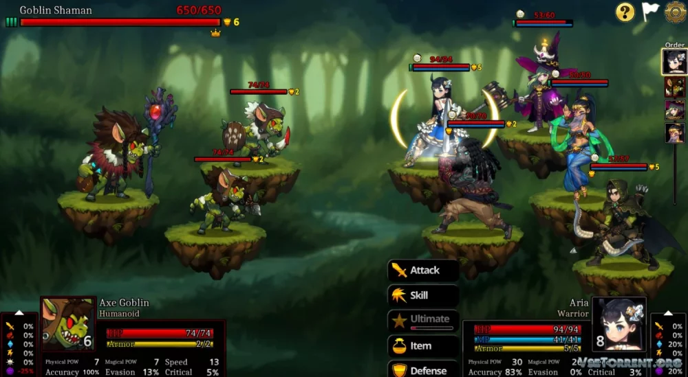 Вас ждет захватывающее приключение в игре ARIA CHRONICLE – захватывающая смесь фэнтезийной тактической пошаговой стратегии и ролевой игры. Готовы отправиться в длинное и опасное путешествие, чтобы сразиться с силами зла и раскрыть тайны фэнтезийного мира?