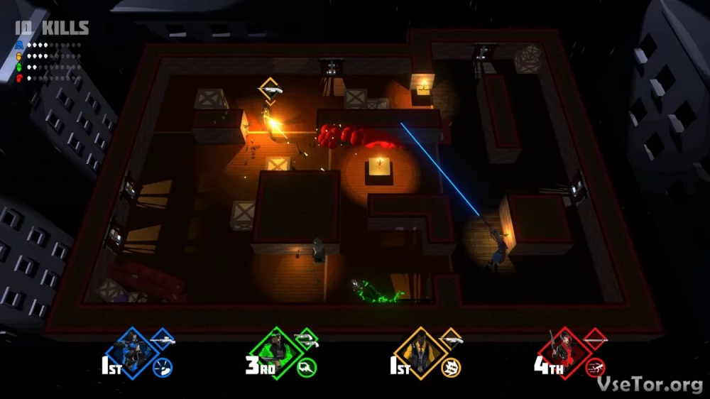 Игра AT SUNDOWN: Shots in the Dark представляет собой увлекательный и динамичный шутер с видом сверху, где вы окунетесь в захватывающие стелс-сражения. Здесь вас ждет разнообразное оружие, уникальные персонажи и геймплей, сочетающий лучшие характеристики современных шутеров.