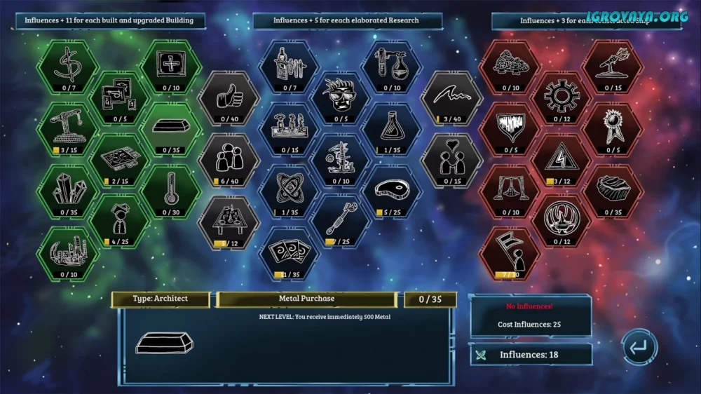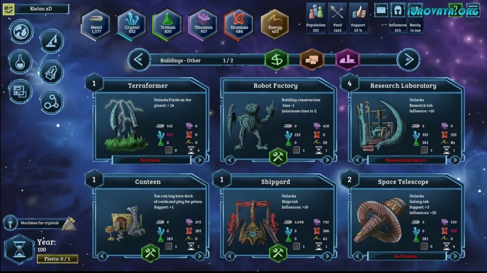 Загрузите Galactic Empire с нашего сайта и погрузитесь в увлекательное путешествие по галактике. Вы сможете выбрать оптимальный уровень сложности и настроить игру под свои предпочтения. Мир игры ожидает ваших решений, которые повлияют на отношения с другими фракциями, внутренние конфликты и развитие технологий.