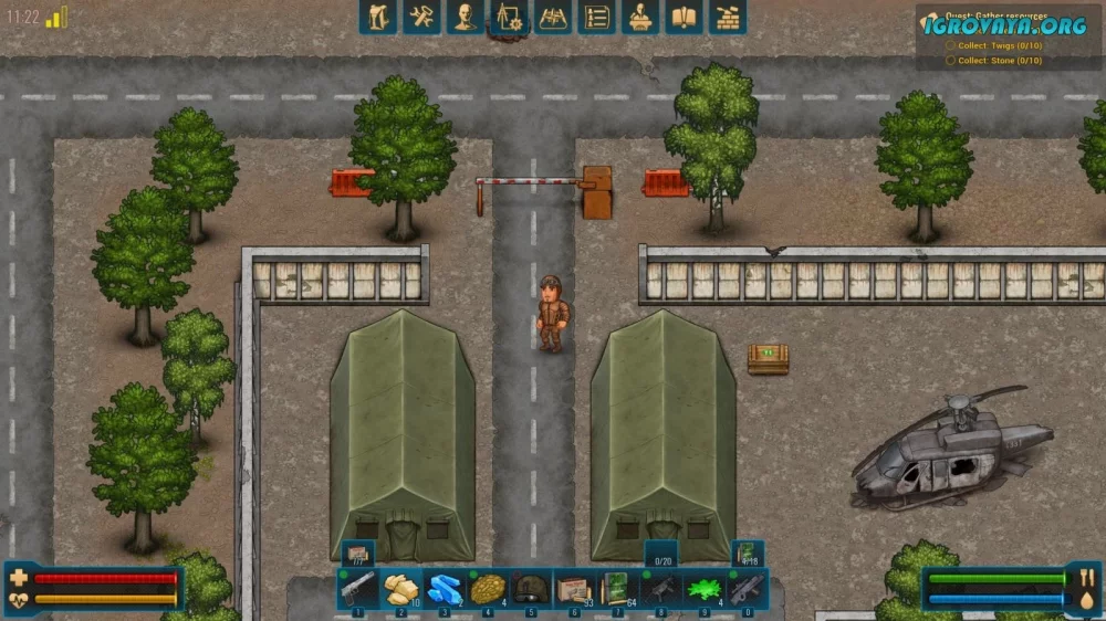 Описание игры. Поступив в игру, вы окажетесь на необитаемой планете, где ваш корабль был аварийно вынужден приземлиться. Вам предстоит исследовать мир, сражаться с враждебными обитателями, искать ресурсы и строить базу для защиты.