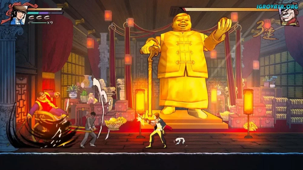 - Сражения с обычными врагами и мощными боссами, такими как бизнесмены, куртизанки-убийцы и военачальники;