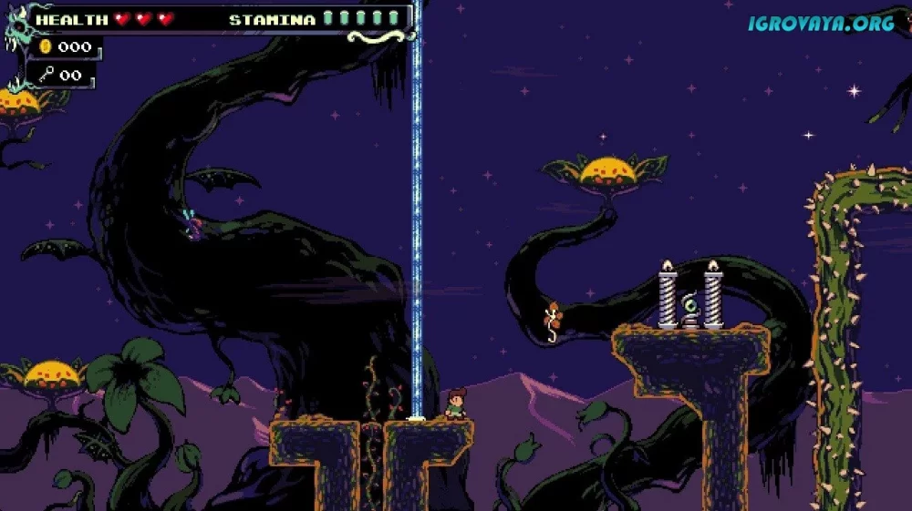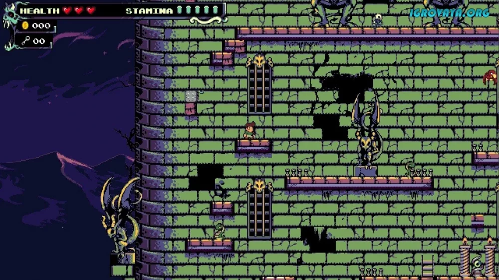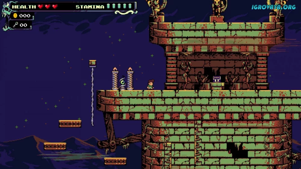 Timothy and the Tower of Mu — это захватывающий ретро пиксельный экшен-платформер с увлекательным сюжетом. В детстве дедушка рассказывал Тимоти легенду о загадочной Башне Му, которая скрывает свою вершину за облаками. Говорят, что она исполняет желания тех, кто сможет достичь ее верхушки, но никто этого не видел, потому что строение уносит жизни тех, кто смеет нарушить ее тайны. После смерти родственника, Тимоти решает проверить эту легенду на себе и отправляется на поиски Башни.