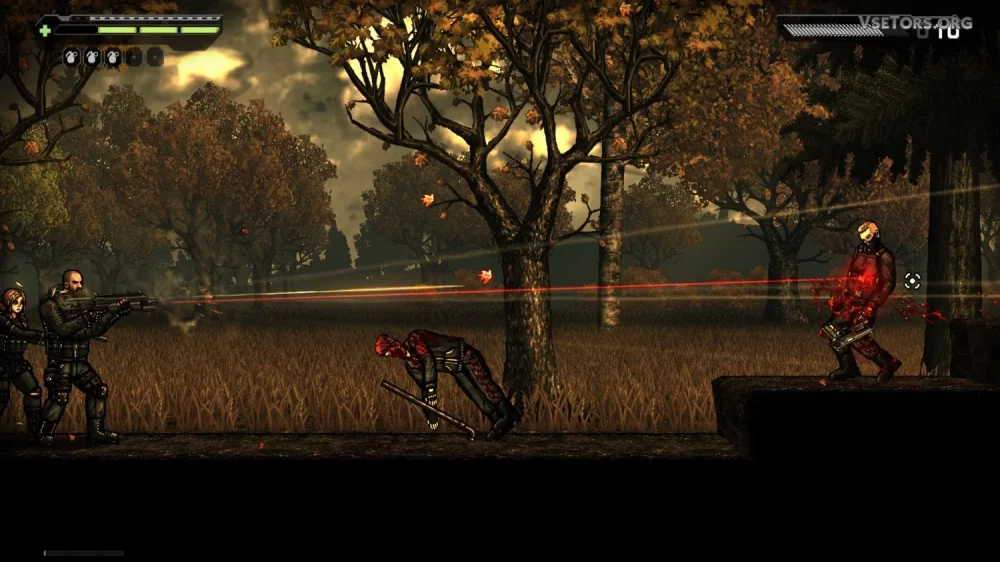 Продвинутая механика телесных повреждений в Leaden Sky открывает перед вами новые возможности убийства врагов. Попав в разные части тела противника, вы вызываете уникальные эффекты, которые делают битву еще более агрессивной и жестокой. Распортованные животы, отстреленные ноги, размозженные головы – все это лишь малая часть возможностей, которые вам предоставляет игра.