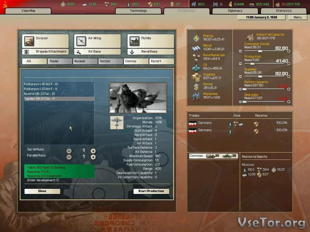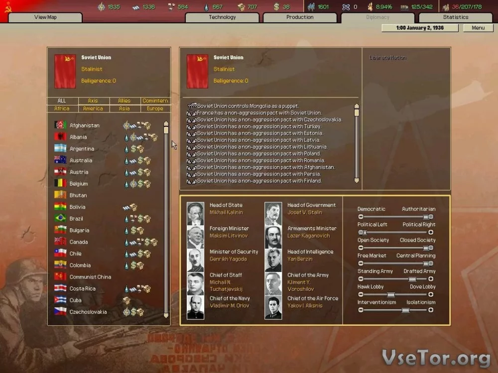 Hearts of Iron 2 (Hearts of Iron II / День Победы II) - это захватывающая военная стратегия, которая погружает вас в атмосферу Второй Мировой войны. Выбрав одну из 175 наций, вы сможете изменить ход истории, взяв на себя ответственность за судьбу целой страны. События разворачиваются с 1936 по 1947 годы, предоставляя игроку возможность управлять нацией до, во время и после войны.