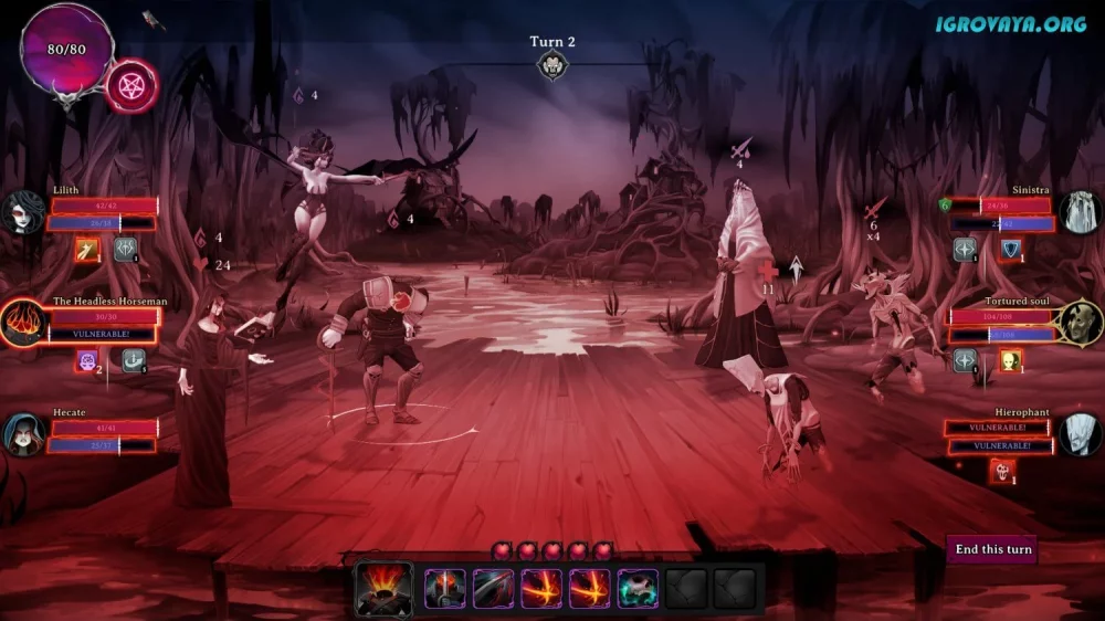 - Развивайте уникальных адептов и следите за шкалой ужаса.