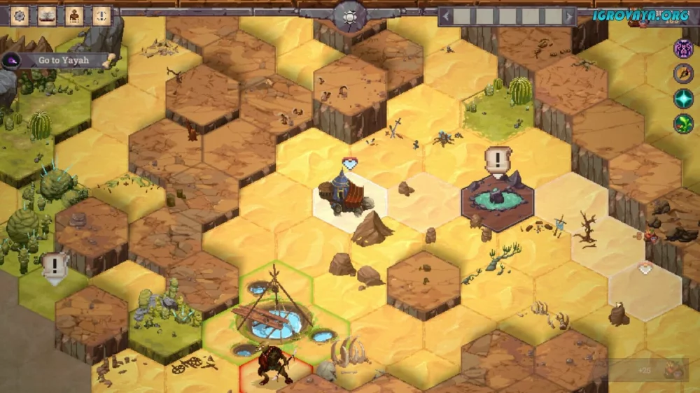 Геймплей Sandwalkers: The Fourteenth Caravan наполнен разнообразием и очарованием настольных игр. Вы перемещаетесь по гексогенному полю, выбирая свое приключение. Поместите фигурку персонажа на клетку и совершайте необходимые действия - будь то бой с монстром или встреча с местными жителями. Пошаговые сражения помогут раскрыть потенциал вашего персонажа и создать эффективные тактики в бою.