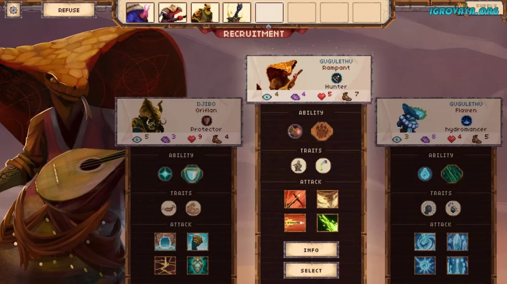 Путешествуя по миру Увандо, вы встретите различных персонажей - от блуждающих жителей до диких монстров, которых можно приручить для своей команды. Пополняйте свой отряд, стройте поселение на руинах древней цивилизации и готовьтесь к постоянным перемещениям в поисках безопасности.