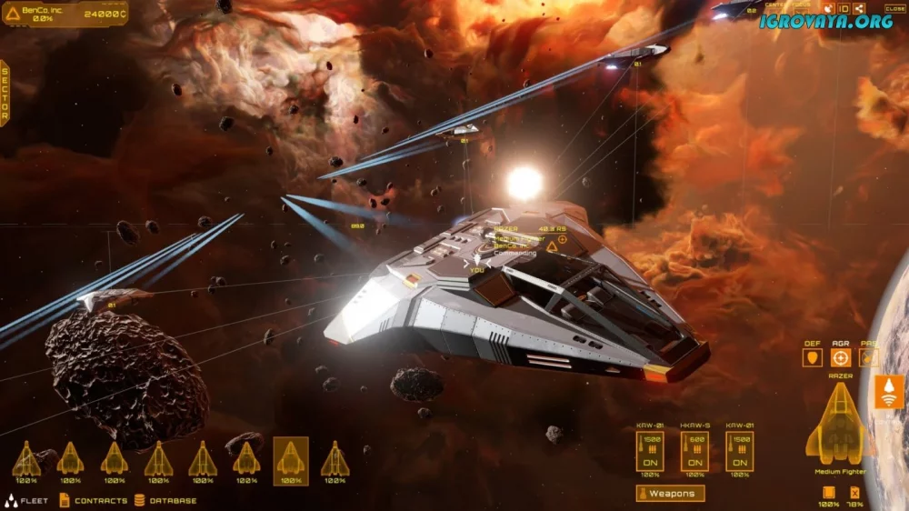 - Широкий выбор космических судов и оружия.