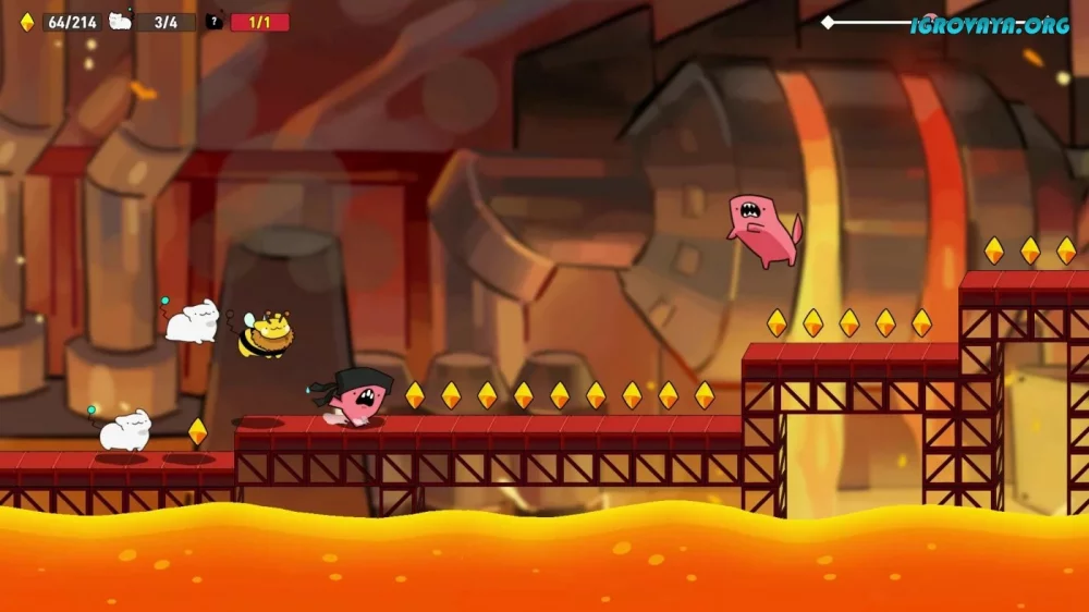 - Бегите, уворачивайтесь и перепрыгивайте препятствия, джампите на головах врагов.