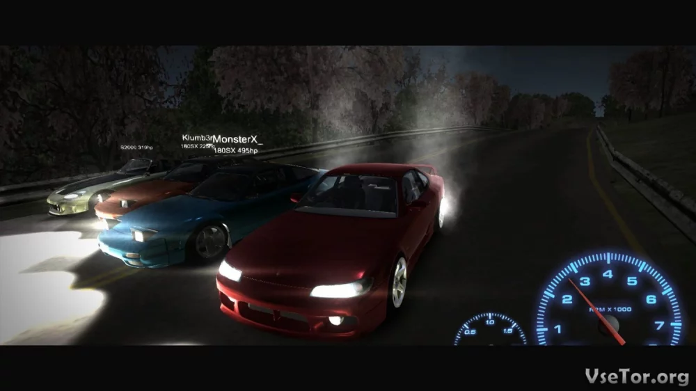 Гонки проходят исключительно в ночное время суток, что добавляет игре азарта и динамики. Отлично проработанное окружение, свет фонарей, неоновые вывески создают уникальную атмосферу, которая погружает вас в игровой мир на все 100%. Реалистичная физика позволяет вам ощутить всю крутость дрифта так, будто вы находитесь за рулем настоящего автомобиля.