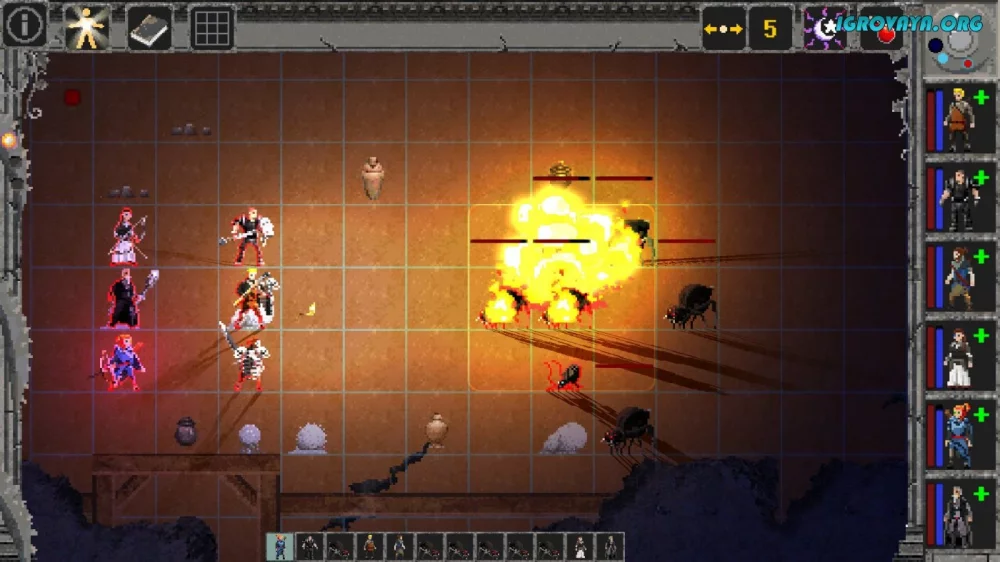 Отправляйтесь в мрачные подземелья вместе с отважными бойцами в тактической ролевой игре с пошаговыми сражениями и классическим фэнтезийным миром. Вас ждут захватывающие приключения и возможность раздобыть ценные сокровища. Исследуйте темные лабиринты руин, блуждайте по непроходимым чащам леса и готовьтесь к встрече с ужасными созданиями, скрывающимися за каждым поворотом.
