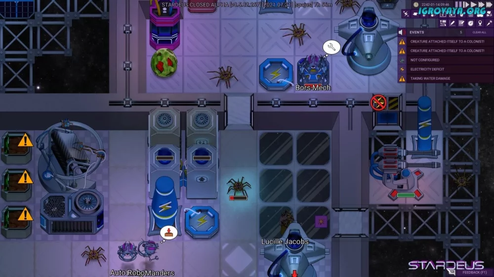 В Stardeus вас ждет множество задач, начиная от ремонта корабля и контроля над системами до выращивания еды, производства материалов и удовлетворения потребностей колонистов. Следите за рандомными событиями, которые могут нарушить спокойствие на борту, и решайте интересные задачи, повышая уровень сложности игры.