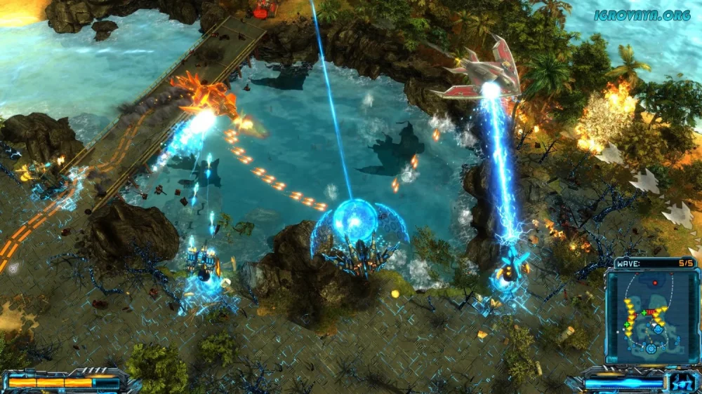 - Большой выбор вооружений, защитных башен и технологий для использования против врага.