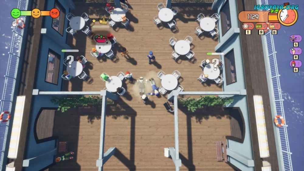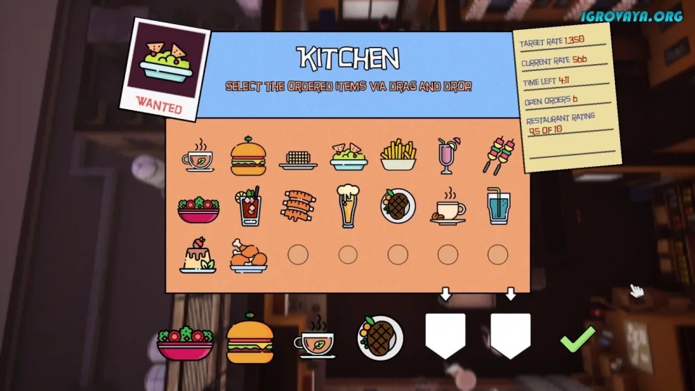 - Разнообразные задания: принимайте заказы, разносите блюда, убирайте столики.