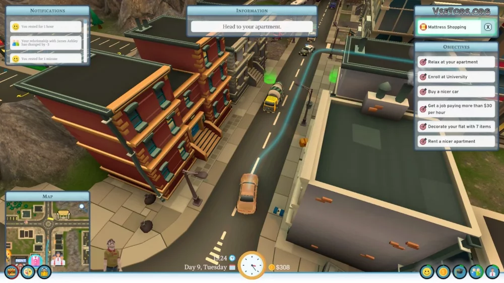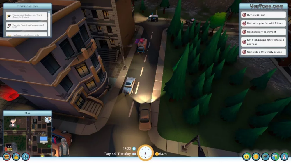 Одним из интересных моментов игры является постоянное принятие решений, которые будут влиять на всю жизнь персонажа. Например, вам придется выбрать, где жить – комфортабельный отель за дорого или скромную квартиру на окраине сэкономить деньги. Таких выборов в игре множество, и каждый из них влияет на ход событий.