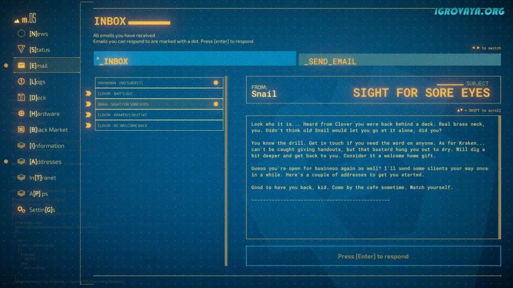 Особенность Midnight Protocol заключается в том, что весь игровой процесс представлен через виртуальный монитор. Здесь нет красочных видов или открытого мира – только экран, на котором отображаются команды и действия. Вам придется тщательно планировать каждый ход, так как даже малейшая ошибка может привести к фатальным последствиям.