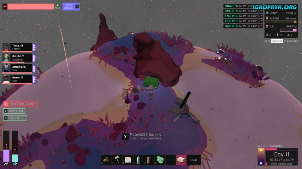 - Собирайте ресурсы и улучшайте свой космический корабль, чтобы обеспечить себя всем необходимым для долгих космических путешествий.