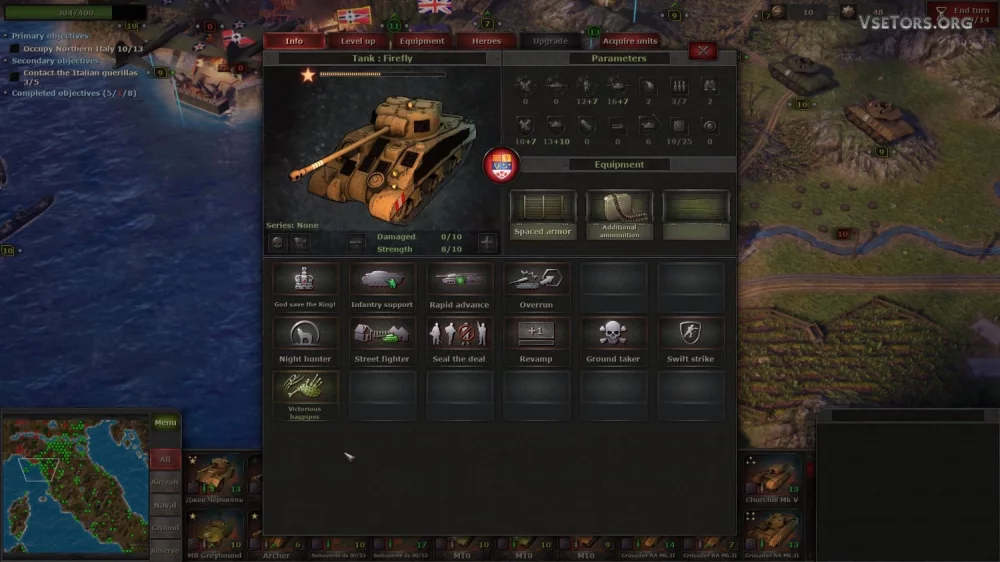 - Разнообразные кампании за Британию и США, включая исторические сражения и операции против Германии и СССР.
