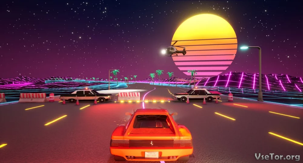 В игре Cyber OutRun нет четкого сюжета, но есть увлекательный игровой процесс, который заставит вас нажать на газ и промчится по улицам яркого города, наслаждаясь яркими пейзажами и множеством серпантинов. Вас ждут захватывающие ретро-гонки, которые погрузят вас в атмосферу драйва.