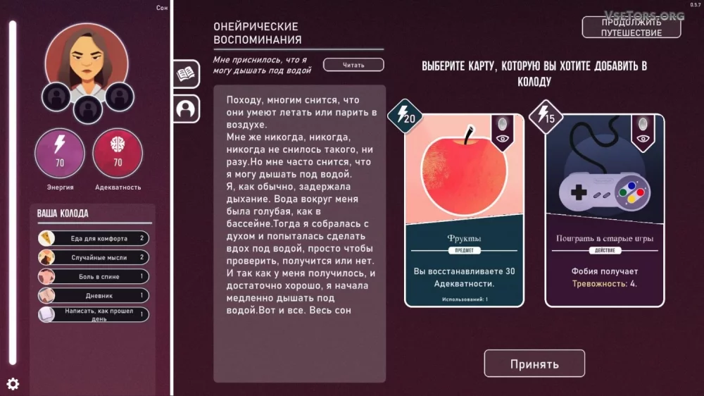 Главное в Neurodeck: Psychological Deckbuilder – это карточные механики. После прохождения теста на определение вашего профиля вам предоставляется стартовая колода карт. Каждая из них обладает уникальным эффектом, способным улучшить характеристики персонажа, предоставить новые умения или применить другие важные возможности. Решение о том, какие карты использовать, может изменить ход событий, поэтому Neurodeck: Psychological Deckbuilder стоит скачать торрентом и попробовать свои силы.