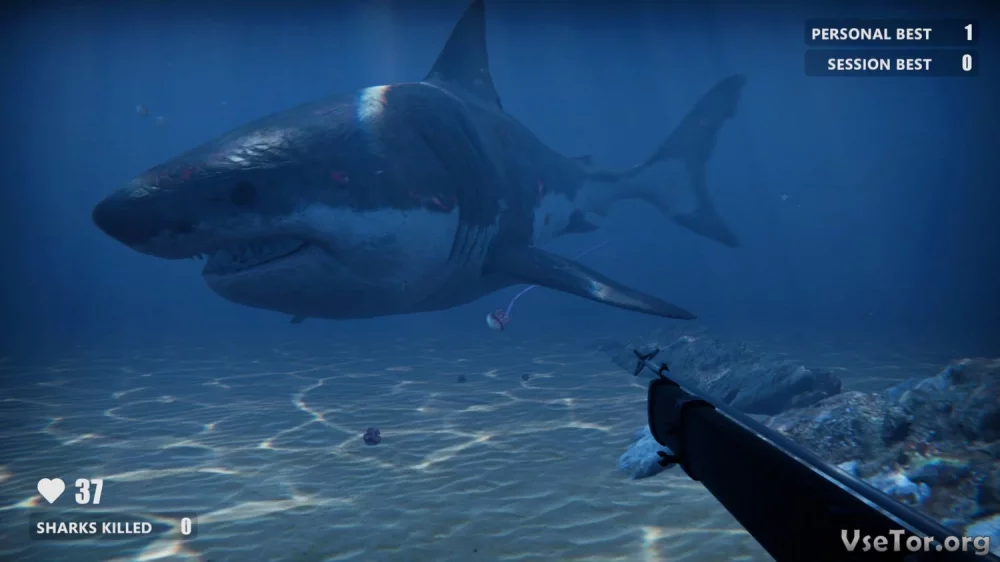 Игровой процесс простой: управляйте водолазом в режиме от первого лица, выживайте на огромной глубине и защищайтесь от нападений акул. Они будут атаковать вас постоянно, и вам придется использовать гарпун, чтобы остаться в живых.