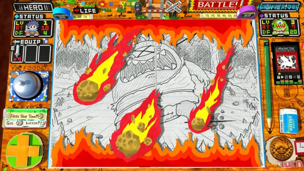 Геймплей игры основан на прохождении линейных миссий, в ходе которых вам предстоит искать предметы, находить им применение и разгадывать загадки на игровом поле. Управляйте своим персонажем при помощи мыши, выбирайте дальнейшие шаги из выпадающего меню и взаимодействуйте с окружающим миром. Вас ждут захватывающие битвы с бумажными монстрами, а также увлекательные мини-игры, где ваша смекалка и ловкость будут настоящими ключами к победе.