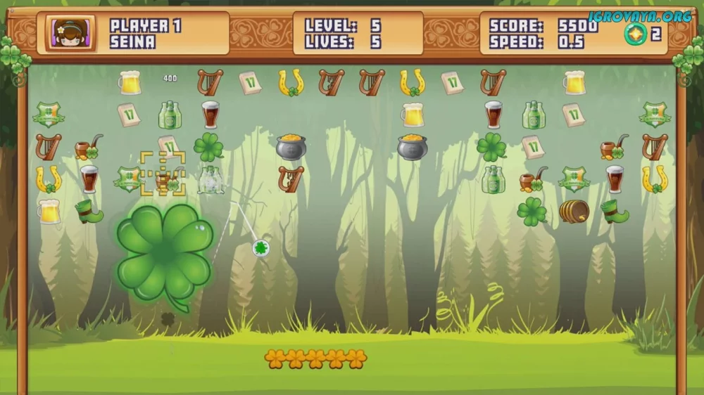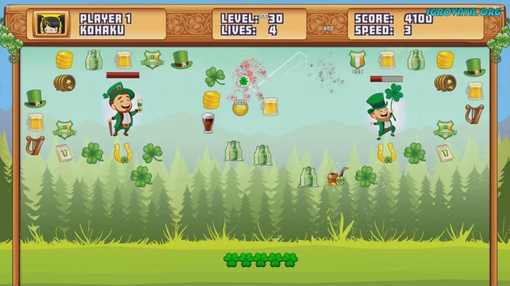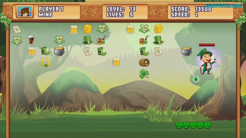 - Управляйте лепреконом, который будет пытаться помешать вам на пути к победе. Будьте осторожны!