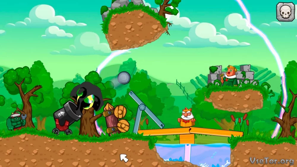 Начните с простых бревен и камней, но вскоре в вашем арсенале появятся новые материалы - веревки, доски, камни, и даже воздушные шары. Сложность уровней будет увеличиваться, и на вас будет возложена задача защитить не только себя, но и королеву. Ваши враги будут разнообразными - от маленьких дракончиков до воинов с катапультами и летающих драконов.