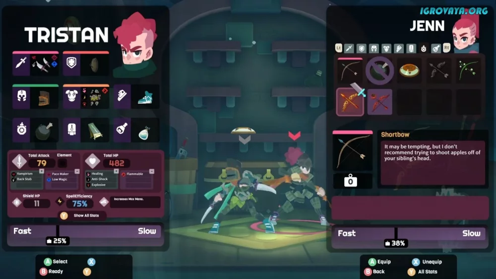 Young Souls - это захватывающая RPG с элементами beat’em up, которая окунет вас в захватывающий мир с уникальным сюжетом и стильной графикой. В игре представлены два мира: обычный мир людей и опасные подземелья, заселенные гоблинами. Невероятные приключения ждут близнецов Джен и Тристена, которые отправляются на поиски пропавшего приемного отца и своего места в этом мире.