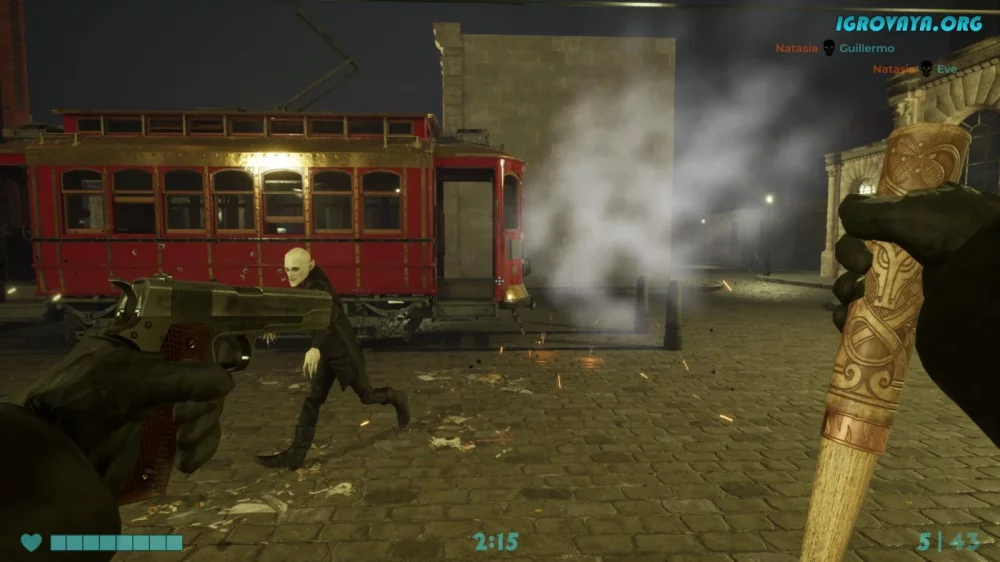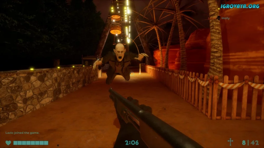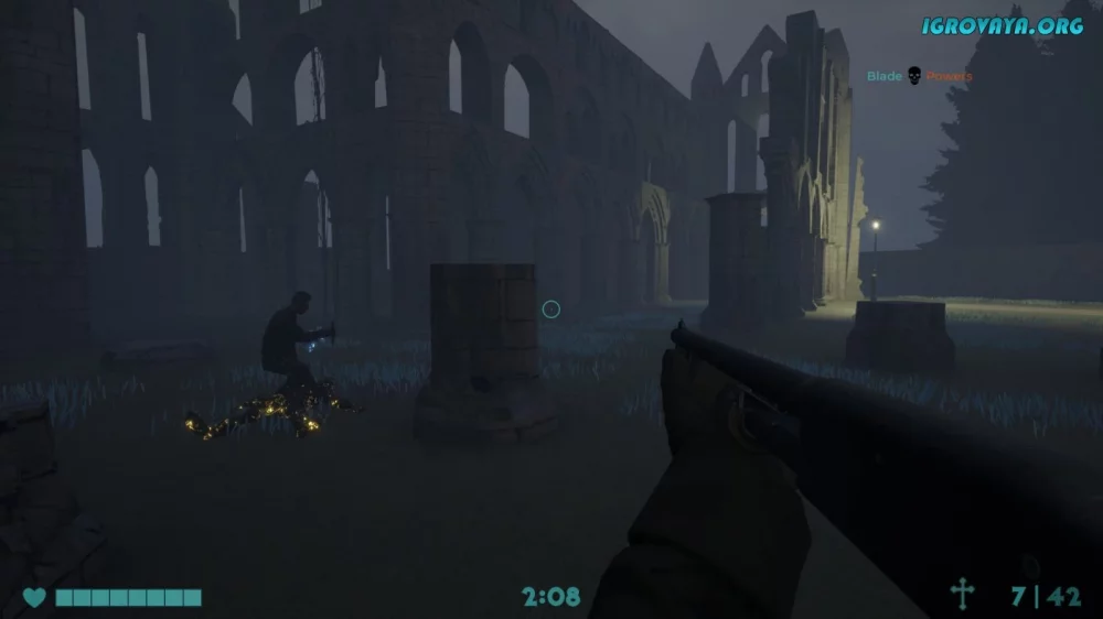 - Уникальные навыки для каждой стороны: Истребители вооружены пушками и колами, Вампиры могут становиться невидимыми и перемещаться по стенам.