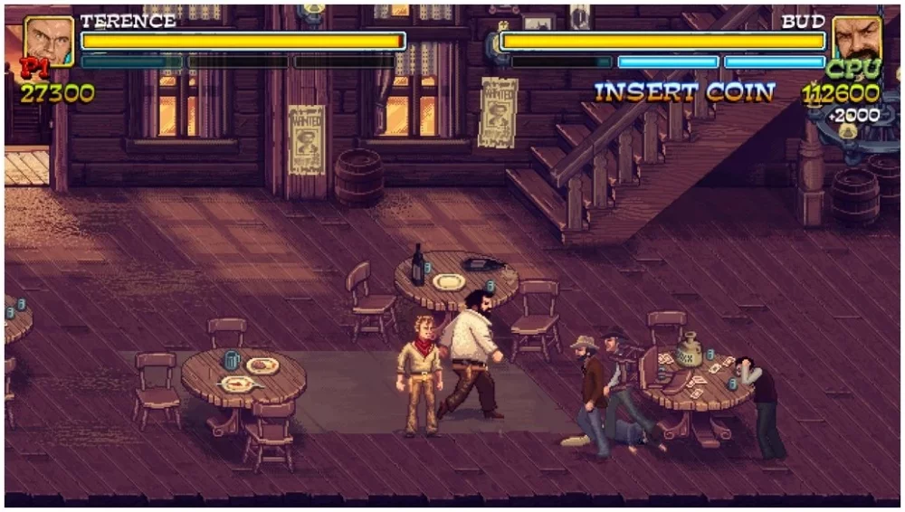 Сюжет Slaps And Beans - это история о спасении похищенной девушки из рук бандитов. Вам придется пройти через целые толпы врагов, используя уникальные навыки каждого персонажа. Теренс Хилл отличается быстротой и ловкостью, а Бад Спенсер - непревзойденной физической силой, способной метать предметы и нокаутировать врагов.