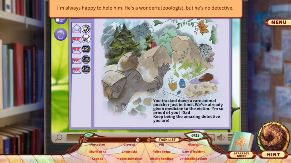 Wilde Investigations: The Zoo Kerfuffle - это захватывающая приключенческая игра в жанре point-and-click, где вас ждет не только увлекательные головоломки, но и запутанный детективный сюжет. В местном зоопарке готовится к празднованию Дня Обезьян. Все должно было быть идеально, но внезапно животные начали вести себя странно, а в вольерах обнаружены следы неизвестного присутствия. Следователь Артемис Уайлд прибывает на место преступления, так как обладает уникальным даром общения с животными.