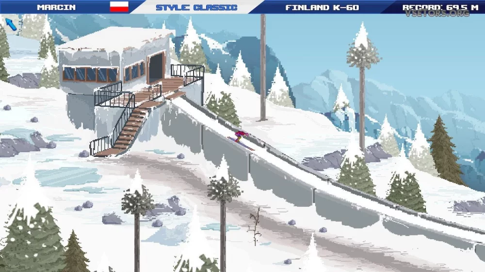 - Захватывающий симулятор прыжков на лыжах;