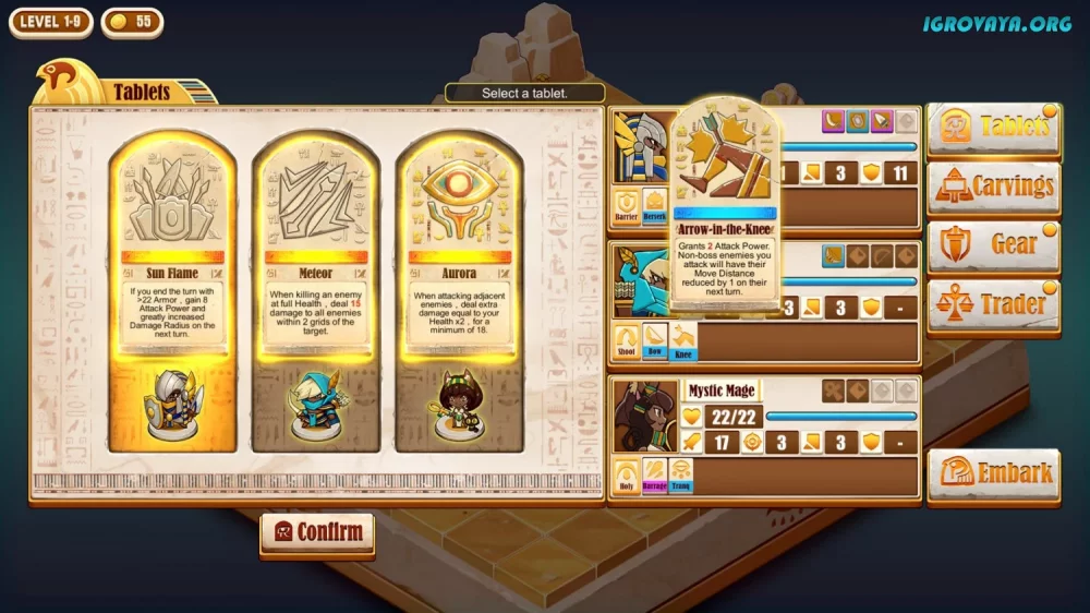 Warriors of the Nile — увлекательная тактическая ролевая игра, в которой вас ждут захватывающие пошаговые бои и захватывающие приключения в стиле рогалика. Змей Апофис похитил солнце, и только великие воины Нила, благословленные египетскими богами, могут остановить его и спасти мир от неминуемой гибели. Создайте отряд, выберите уникальные способности для каждого героя, снарядите их лучшими артефактами и отправляйтесь сразиться с врагами в захватывающих боях.
