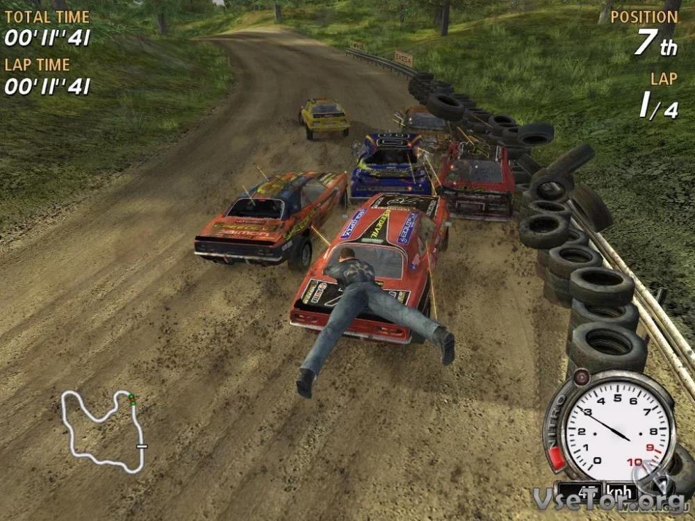 Принимайте участие в заездах, сражаясь за кубки, улучшайте тачки, исследуйте трассы и расправляйтесь с противниками. FlatOut 1 – это игра, способная завоевать ваше внимание и влюбить в себя на долгие часы развлечений.