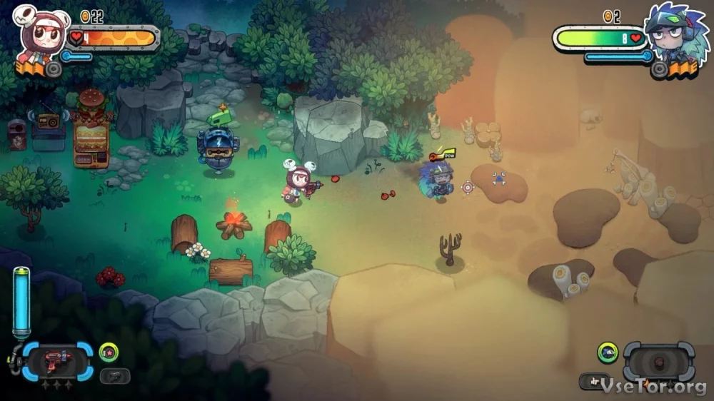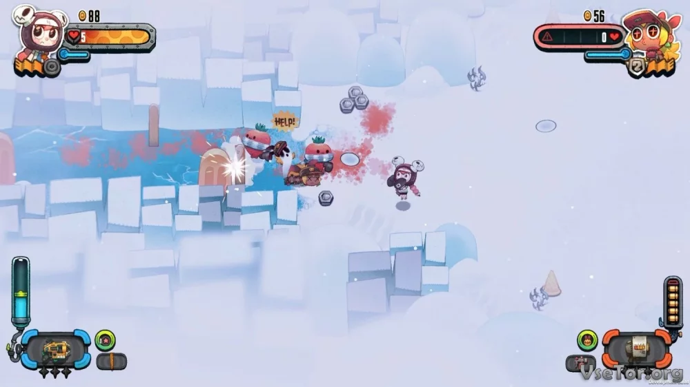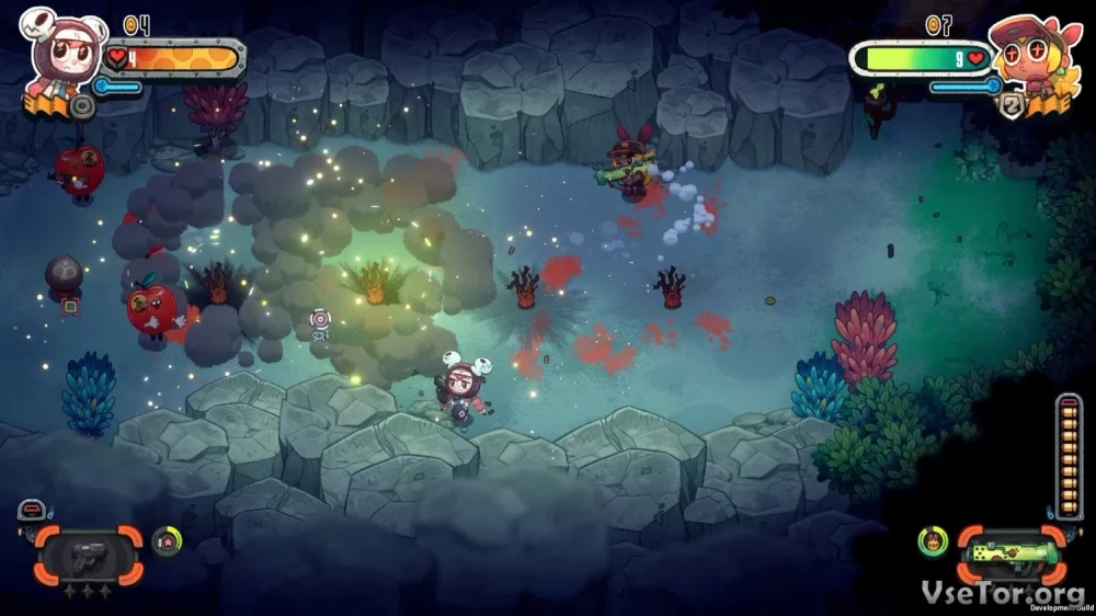 Погрузитесь в красочный мир Juicy Realm, где вы сможете отыскать секретные места, выполнять задания и модифицировать свое оружие. В магазине вас ждут различные предметы, но помните, что нужно зарабатывать игровую валюту, чтобы приобретать все необходимое.