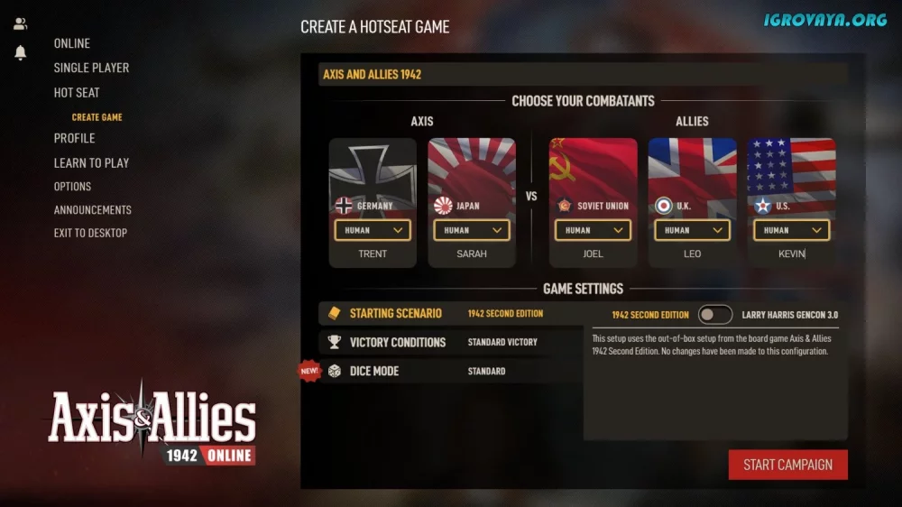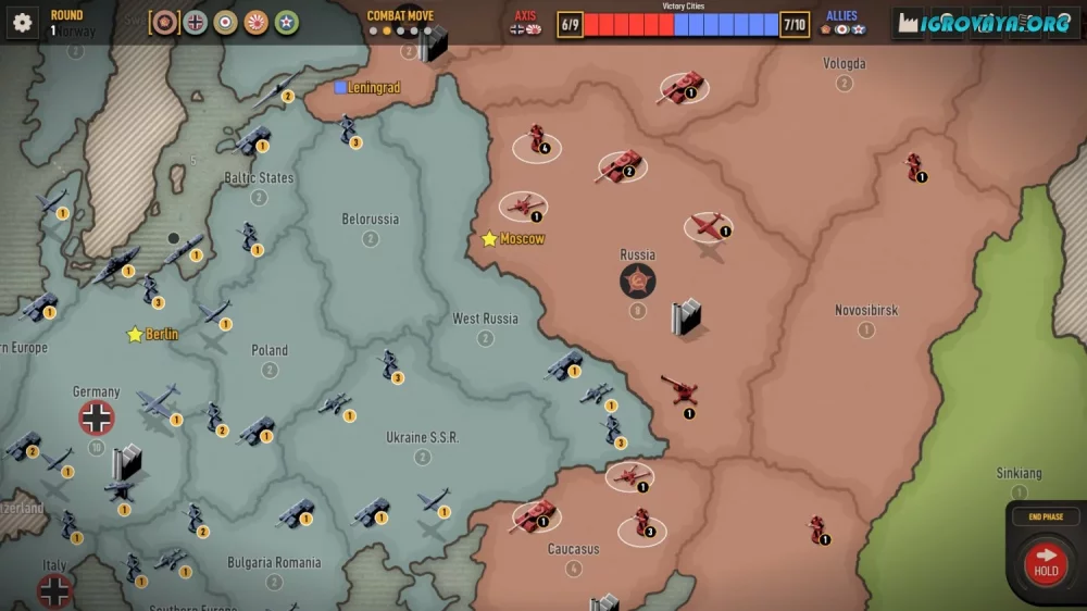 - Возможность выбора стороны конфликта - Союзники или Ось.