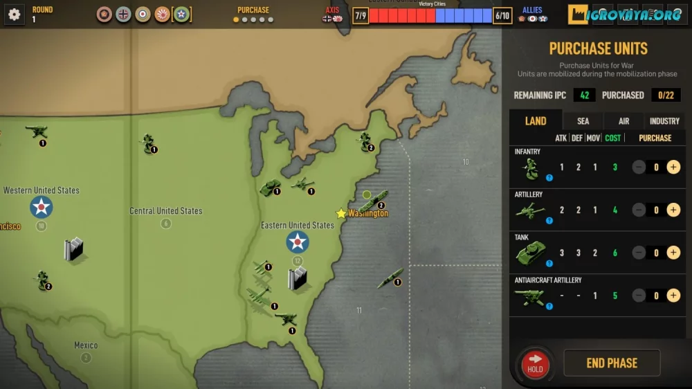 Участвуйте в сражениях, соревнуйтесь с другими игроками, и измените ход истории, сражаясь за свою сторону в Axis & Allies 1942 Online. Наступили ваше время и ваша возможность проявить себя как военачальник и стратег.