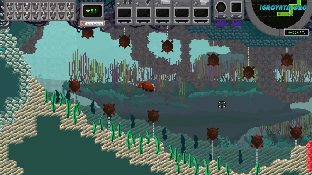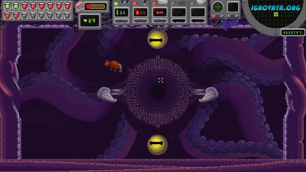 Глубины Разума — это зловещая пиксельная метроидвания, вдохновленная произведениями Лавкрафта, которая погружает вас в напряженную атмосферу подводного мира. Главный герой, аквалангист Эйбл Дуглас, получает загадочный сигнал, и экипаж подводной лодки «Баронесса» исчезает без следа. Ваша задача — спуститься на самое дно океана, чтобы найти ответы, но будьте готовы к тому, что вы узнаете, подорвет вашу уверенность в реальности.