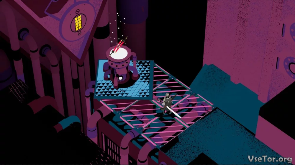 Головоломки в Creature in the Well удивительно разнообразны и креативны. На одной вам придется искать ключевой объект, который поможет пройти дальше, а на другой – сражаться с энергетическими зарядами, отбивая их мечом героя. Разнообразие головоломок подарит вам множество удивительных впечатлений и не оставит места для скуки.
