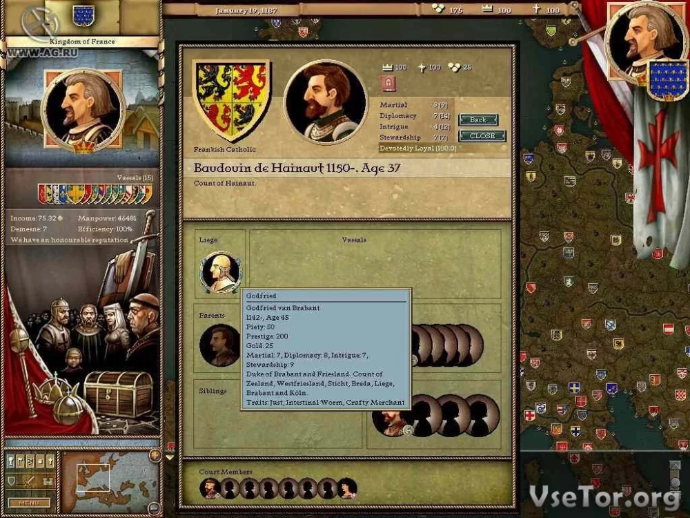 Crusader Kings - это глобальная стратегия, в которой вам придется сражаться за свою жизнь, выживать, захватывать вражеские территории, участвовать в интригах и заговорах, и делать все, чтобы стать величайшим правителем в истории...