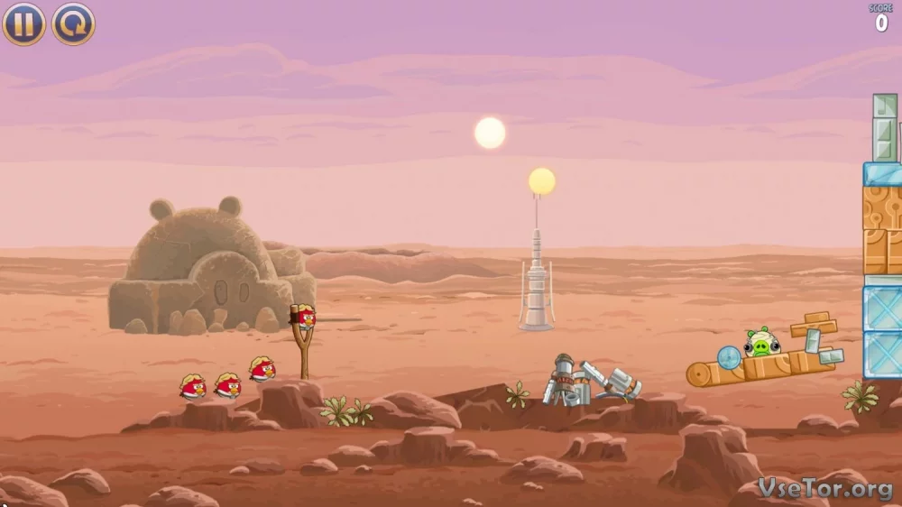 - Продолжайте свое приключение в Angry Birds Star Wars II, где роли героев исполняют свиньи и птички. Отправьтесь на восьмь эпизодов волнующих сражений и приключений.