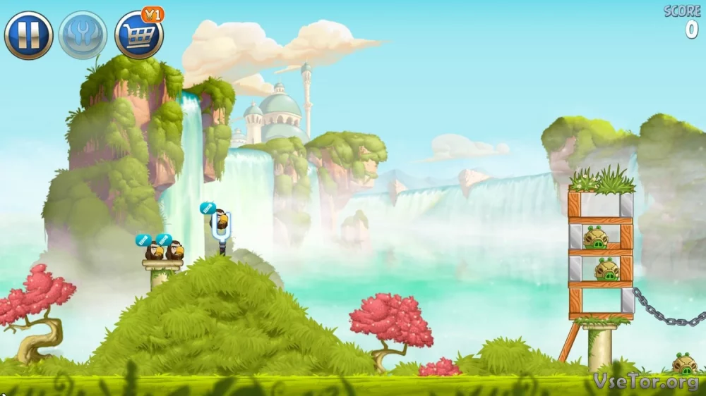 - Отправьтесь на путешествие по вселенной Звездных войн в игре Angry Birds: Star Wars, где вы сразитесь с империей, Темным Хряк-лордом и другими опасностями.