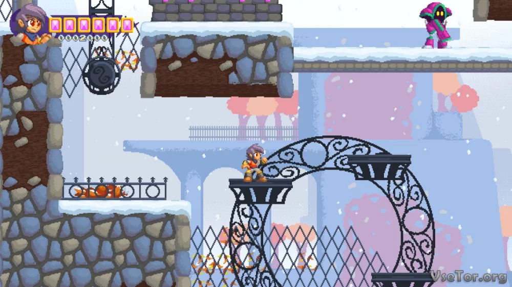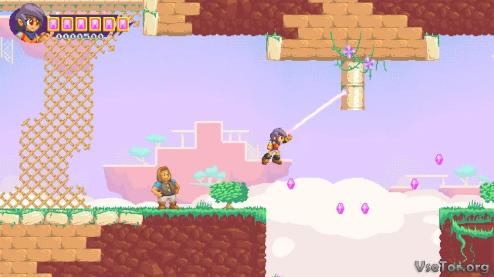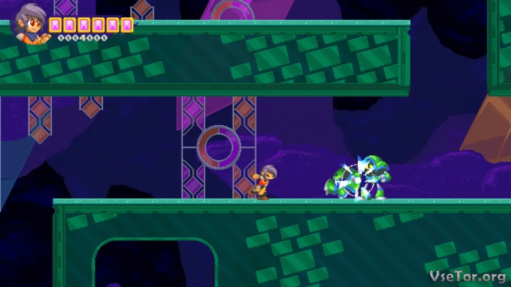 Grapple Force Rena - это захватывающий двухмерный платформер с увлекательным сюжетом, где вас ждет захватывающее приключение вместе с главной героиней по имени Рена, обладающей магическими браслетами.