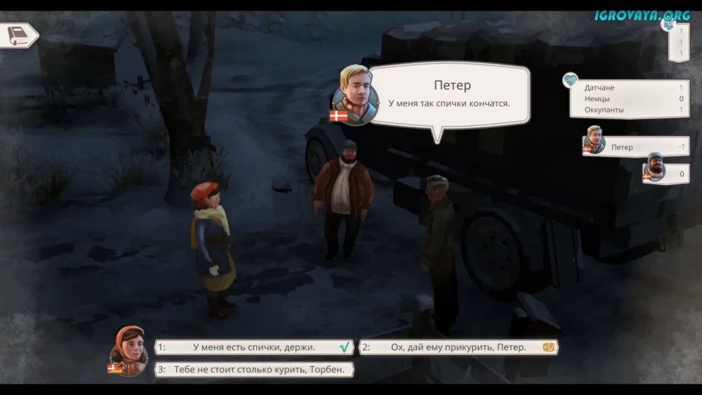 Gerda: A Flame in Winter - это захватывающая ролевая игра со сложным и трогательным сюжетом. События разворачиваются в маленькой датской деревне во время Второй мировой войны. После того, как Дания была захвачена Германией без боя, жизнь всех жителей страны кардинально изменилась. Герда, молодая медсестра, вынуждена принимать серьезные решения каждый день, которые окажут влияние не только на ее собственное будущее, но и на судьбу всего народа. Готовы ли вы рисковать всем или предпочтете действовать осторожно и разумно?