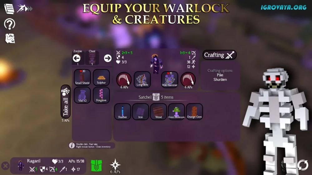 - Прокачивайте своего чернокнижника, распределяя очки опыта на улучшение нужных характеристик.