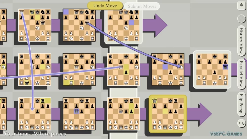 - Сложные режимы, шахматные головоломки, обучение и возможность просматривать ходы из разных измерений.