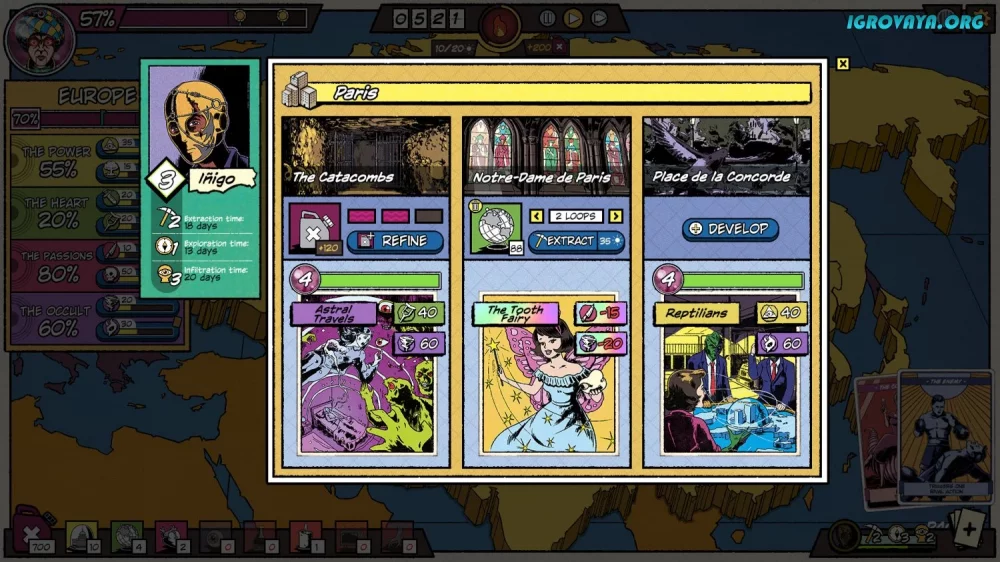 Интересная игра с оригинальным сюжетом и комиксной подачей — вот что представляет собой The Fabulous Fear Machine. Вам открылось таинственное послание, и теперь на вас лежит миссия стать хозяином загадочной Машины. При помощи механических джиннов вам предстоит посеять страх и ужас по всему миру. Путешествуйте, распространяйте мифы и легенды, используя шпионов для сбора информации и вызывайте панику, чтобы достичь своей цели и захватить Землю.