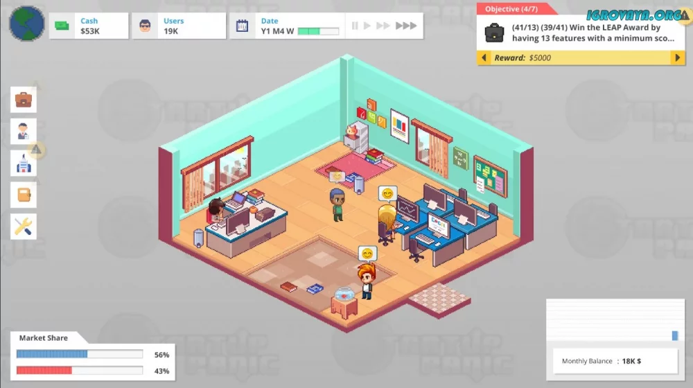 Startup Panic – это захватывающий симулятор разработчика программного обеспечения, который погрузит вас в мир стартапов и бизнеса. Вам предстоит пройти сложный путь от начинающего предпринимателя до владельца успешной IT-компании. Готовы ли вы стать новым гигантом индустрии?