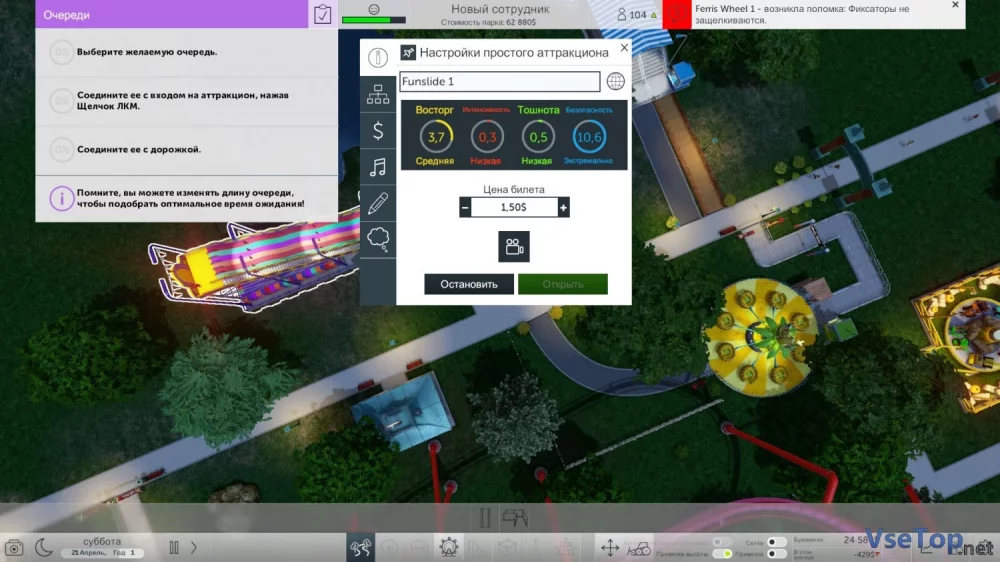 - Широкий выбор аттракционов и возможность создания собственных.